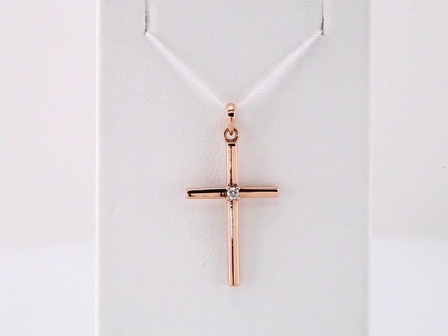 R42326 / Pendant / Set / 14K Yellow / Round / Natural Diamond / 1.3Mm :: 0.01 Ct / I1, G-H / Polished / Cross Pendant