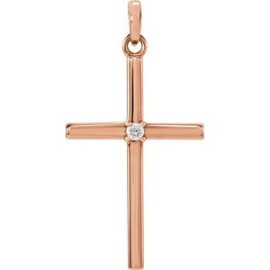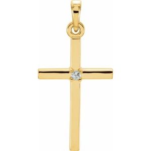 14K Yellow .01 CT Natural Diamond Cross Pendant