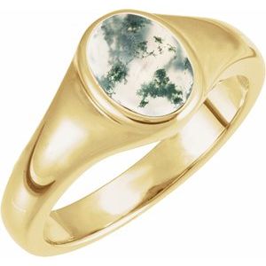 71400 / Ring / Set / 14K Yellow / Natural Moss Agate / Oval / 8 X 6 Mm / Polished / Moss Agate Ring