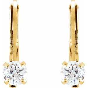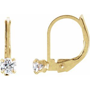 19114 / Earring / Set / Imitation White Cubic Zirconia / Round / 2 Mm / 14K Yellow / Pair / Lever Backs / Polished / Youth Cz Earrings