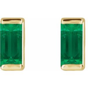 88107 / 14K Yellow / Set / Straight Baguette / Lab-Grown Aqua Sapphire / Pair / 4 X 2 Mm / Friction / Friction Backs Included / Polished / Natural Aqua Sapphire Channel-Set Earring