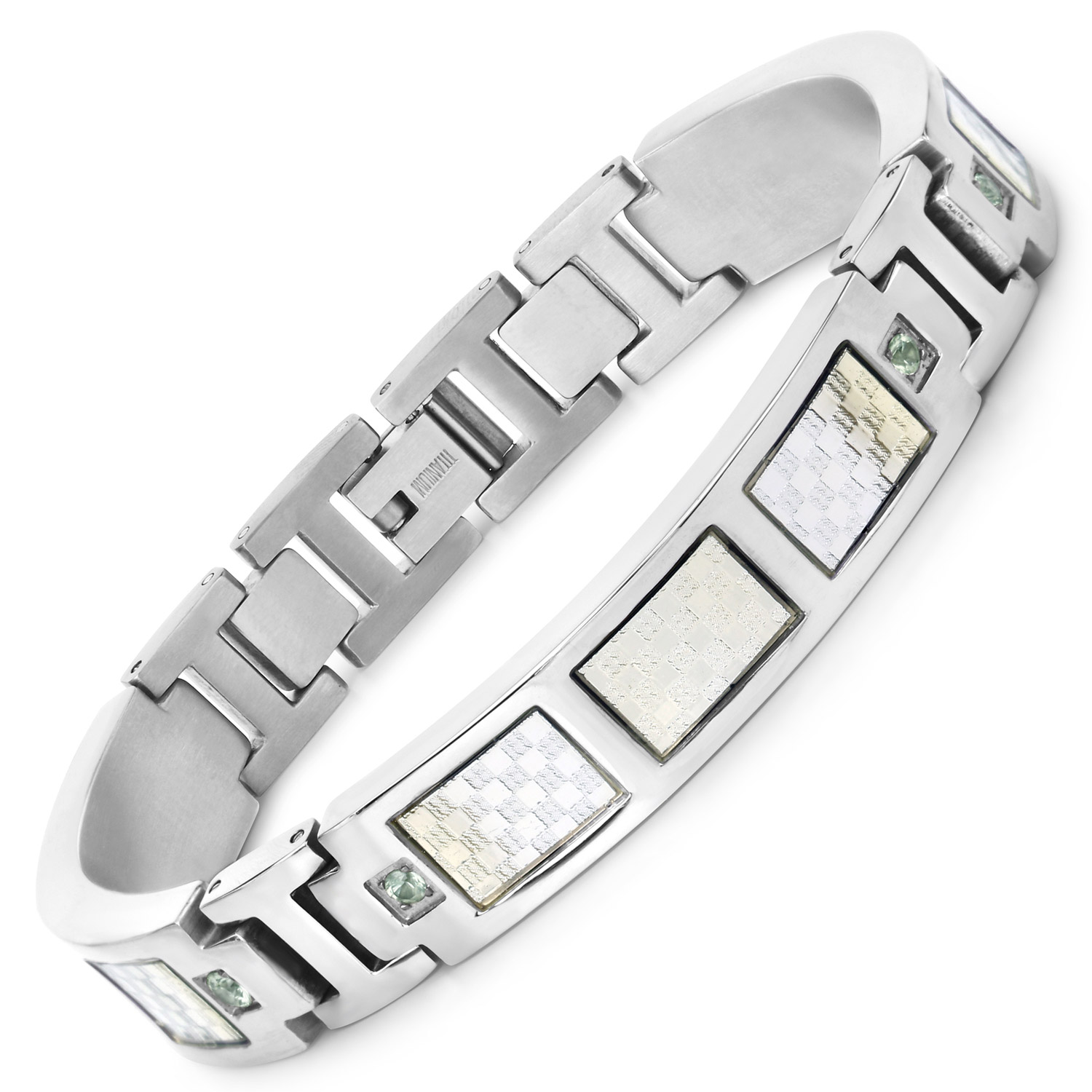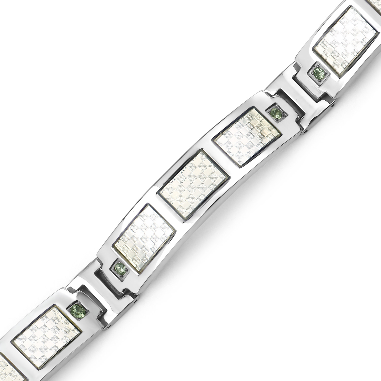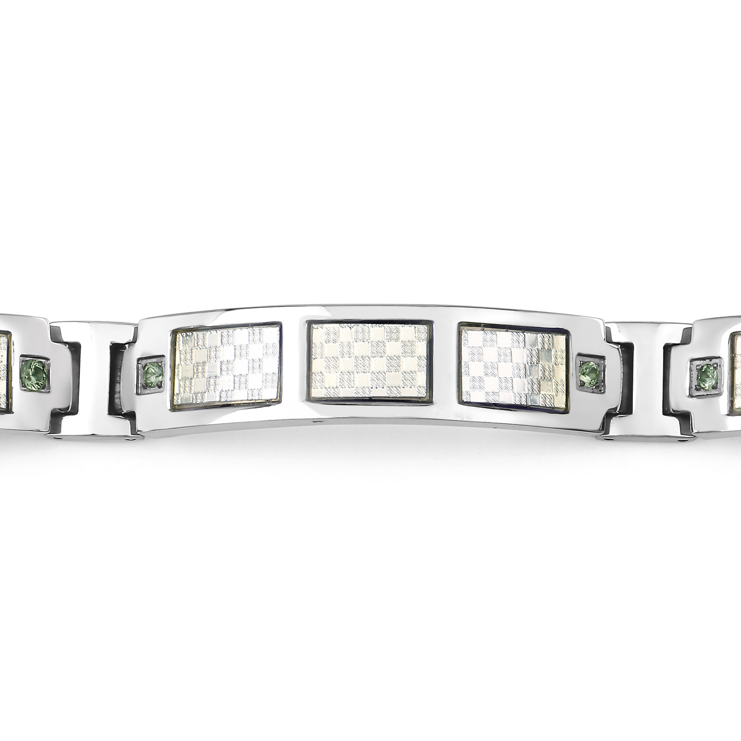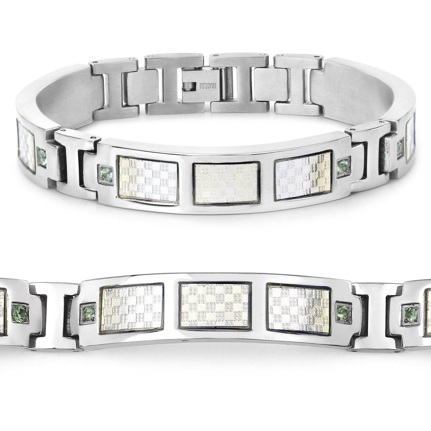 This Mens Titanium Bracelet, Titanium Mens Bracelet with Silver Plated Steel Inlay, 0.48ctw. Natural Green Sapphire Rounds is a Bracelets that is made out of Titanium