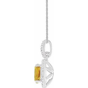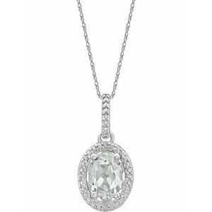 14K White Natural Blue Sapphire & .05 CTW Natural Diamond Halo-Style 16″ Necklace